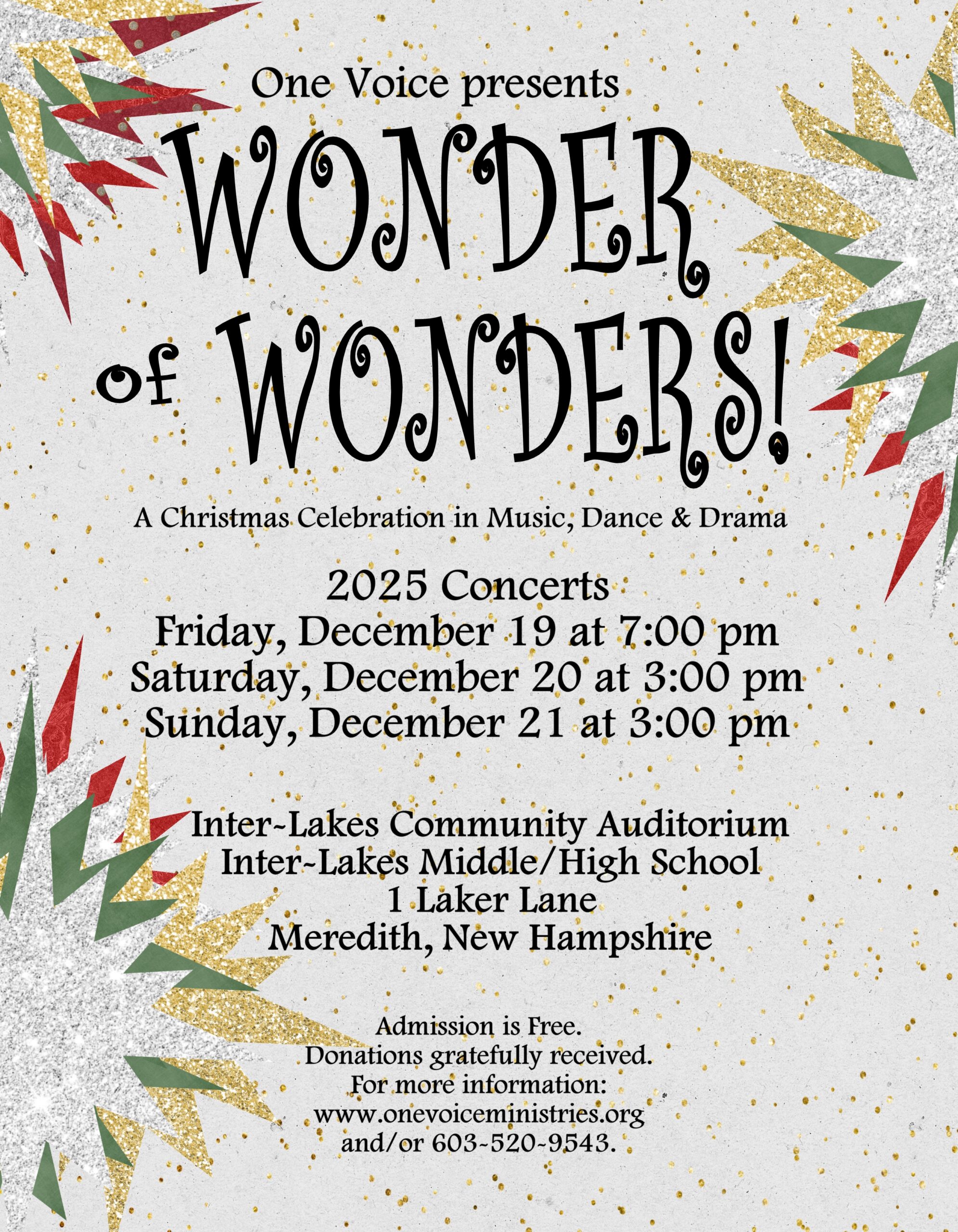 So glad you found us! YOU ARE INVITED to our 25th annual One Voice Christmas Program. Our theme this year is “COUNTDOWN TO CHRISTMAS”! You will not want to miss it.